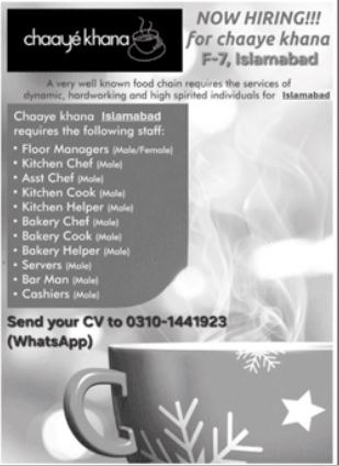 Chaaye Khana Restaurant Islamabad Jobs 2025