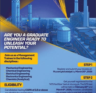 Join the FFC Management Trainee Program 2026 designed for engineers at Fauji Fertilizer. Discover opportunities to grow your career with one of the leading companies in the industry.